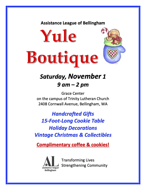 Join us at our popular Yule Boutique! You won’t want to miss our famous 15-foot-long table loaded with cookies, candies and cakes. Also featured are handcrafted gifts, holiday decorations and vintage collectibles. Free admission. Come early…bring a friend!