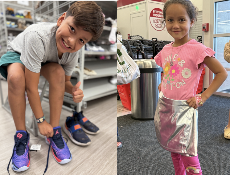 Our Operation School Bell® program provides new school clothes for children in grades TK-5. Parents of children in uniform schools place orders for new uniforms and shoes that our volunteers assemble and deliver in personalized totes.  For nonuniform schools, children and their parents shop with our volunteers for new clothes at Burlington in Pleasant Hill.  This school year was very successful.  We supplied uniforms and shopped for 3,600 students in grades TK-5.  Our program also supplied clothing for unhoused youth in our county in grades TK-12.