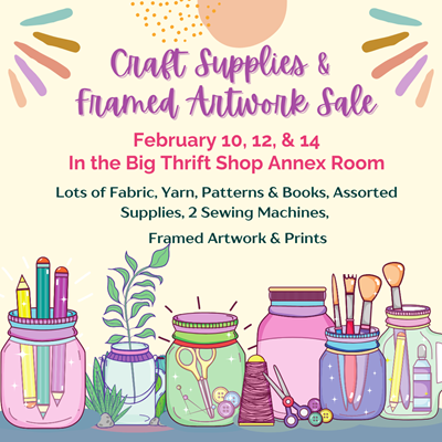 SALE BEGINS FEBRUARY 10 th. In the Chapter House next door to the Thrift Shop. Dates February 10, 12, and 14 from 10 AM to 3 PM