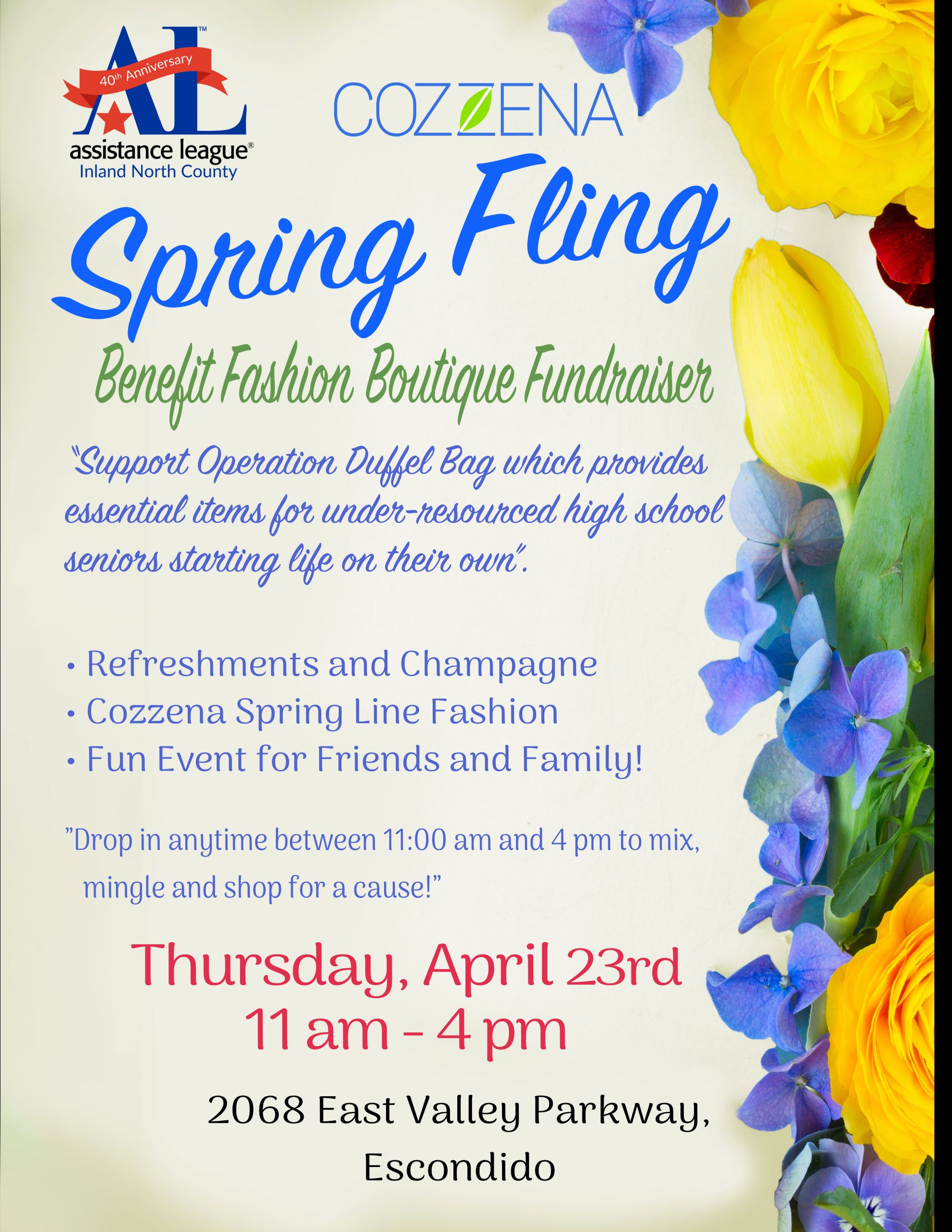 It was so much fun last October, we’re doing it again! Join us in another fashion event to raise funds for the many program Assistance League Inland North County supports. See the flyer below for details.
