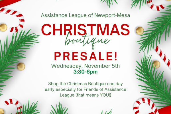 Save the Date! Assistance League of Newport-Mesa Art & Furniture Sale May 16 & 17, 2025 10:30am – 2:30pm Upstairs Garden Room For more info please call…