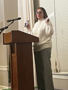 Our keynote speaker, Maggie Perez-Rives, the Family Engagement Coordinator at Lynbrook Elementary School, explained how our programs impact the schools we support: the children look forward to receiving the food provided through our Weekend Food for Kids program; new coats and shoes mean children can go outside to play and burn off some energy without being cold; and the books we provide at our “Build a Child’s Library” events are often the only books the students own.