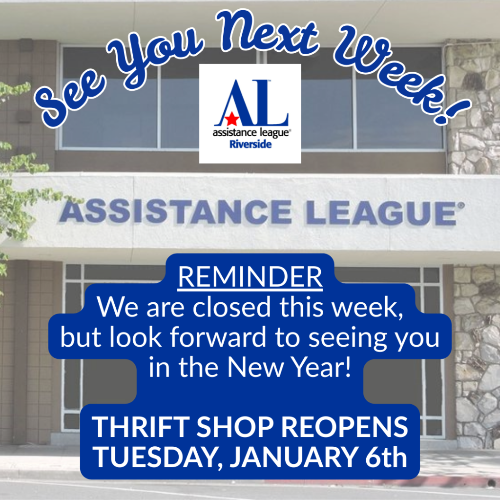 Thank you for the help you provide for our community’s children when you shop or donate at the Assistance League of Riverside’s Thrift Shop.