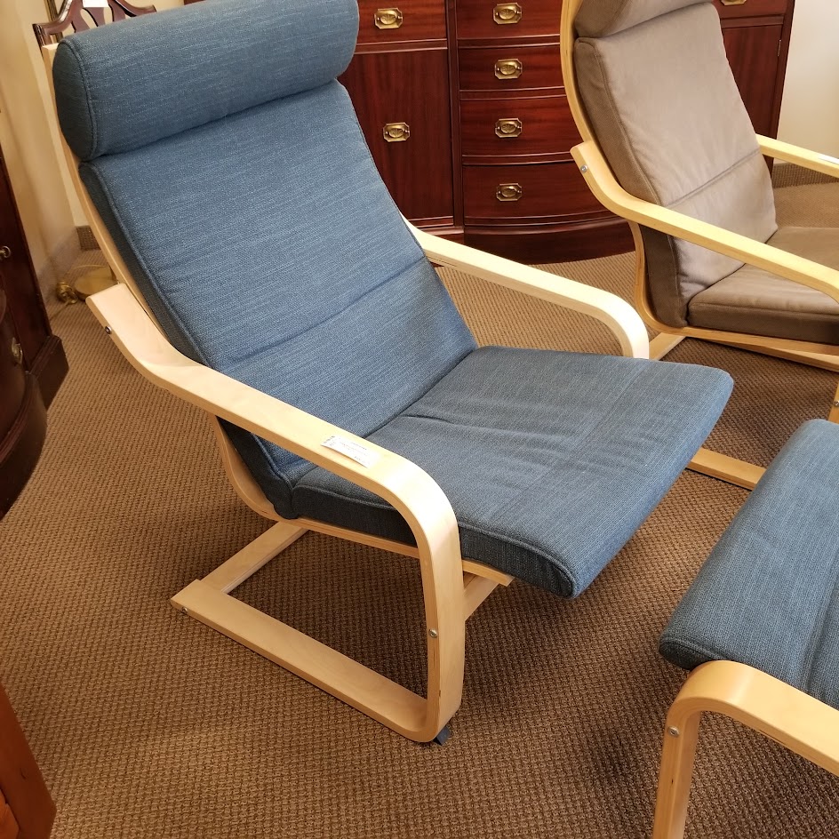 Blue Poaeng Ikea Chair w/Ottoman