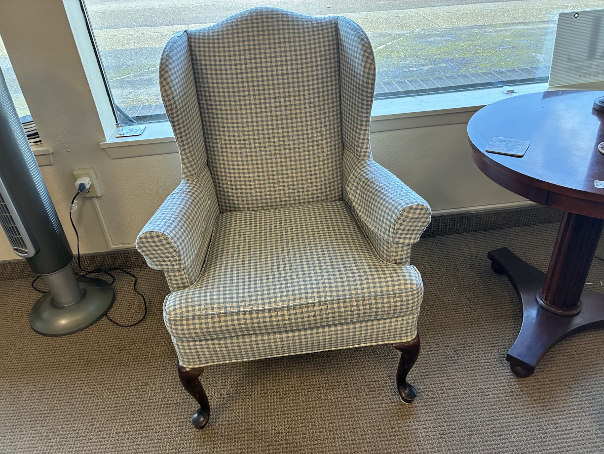 Blue Check Wingback Chair