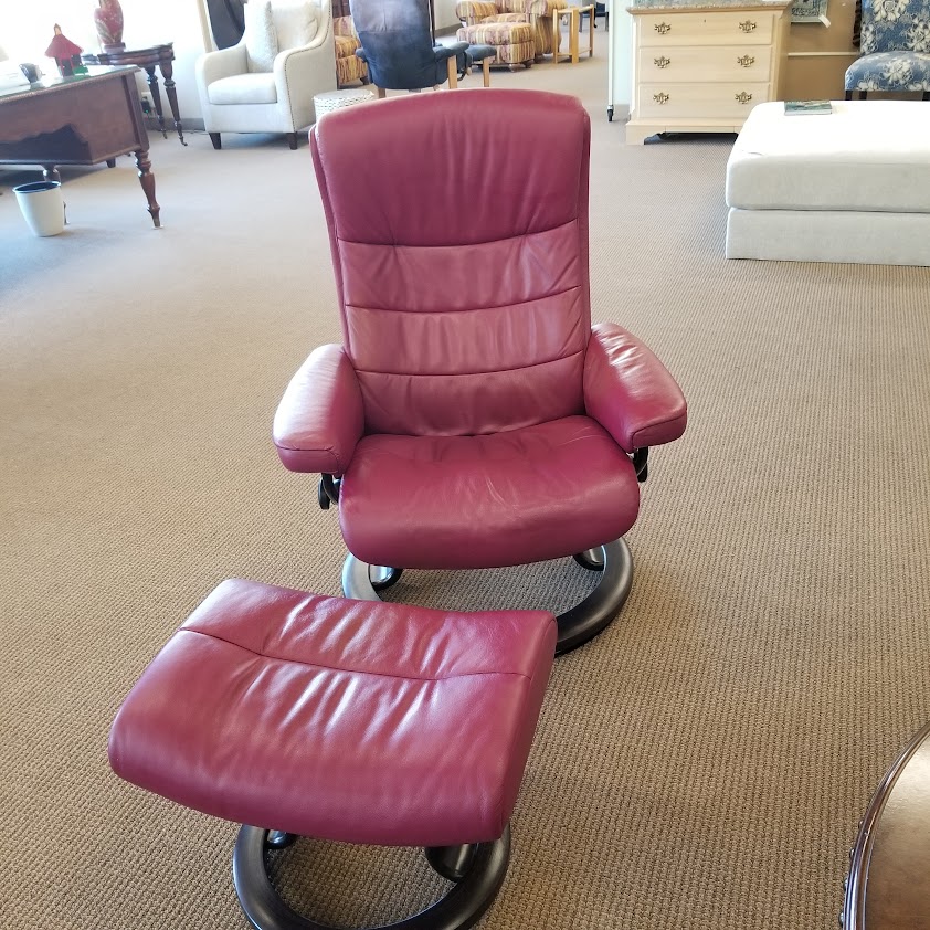 Paloma Beet Red Stressless Chair w/Ottoman
