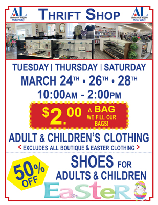 Thrift Shop Sale for March 24 • 26 • 28