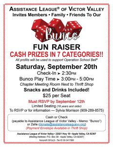 The Bunco “Fun” Raiser on Saturday, September 20, 2025, was a tremendous success!